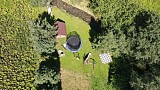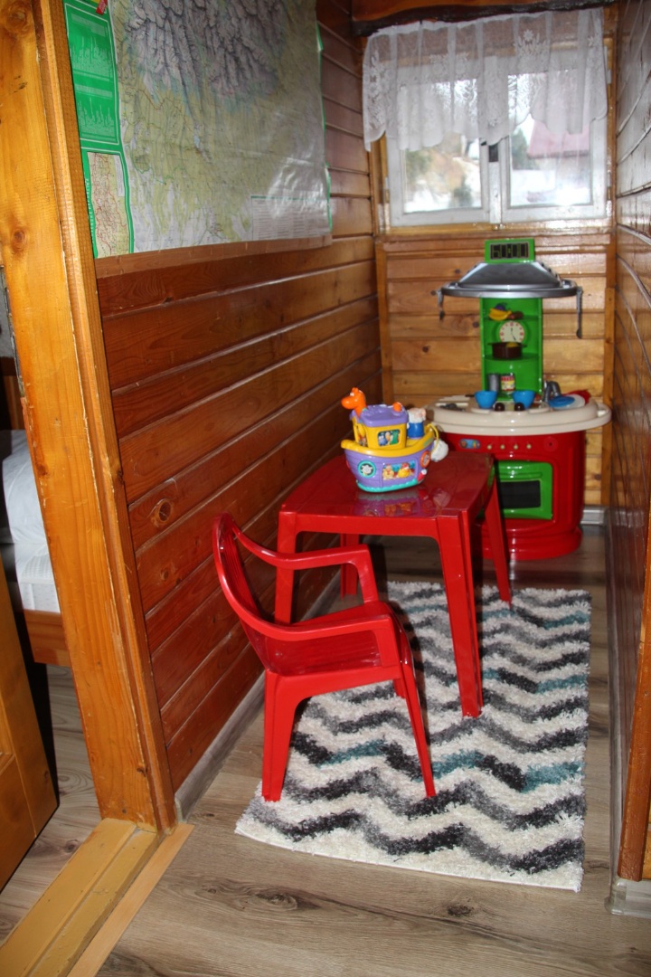 Ihrisko s trampolínou, hojdačkou, šmykľavkou a pieskoviskom s morským pieskom. Záhradné šachy s originálnymi drevenými figúrami.