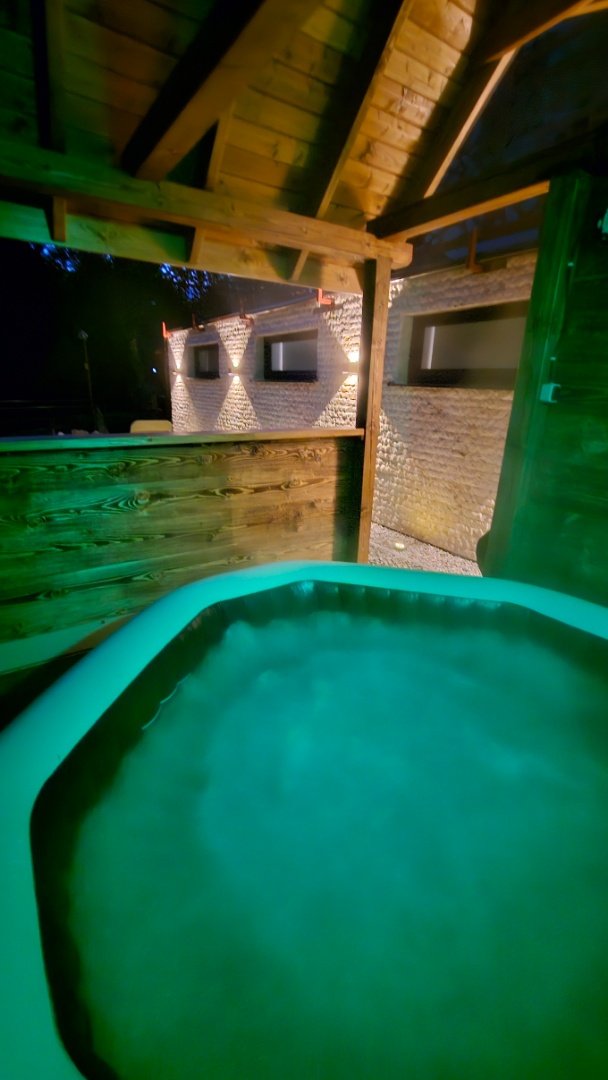 Počas mesiacov máj až október je k dispozícii vonkajšia nafukovacia vírivka s morskou vodou vyhriatou na 37 až 39 stupňov. Užijete si relax vďaka 140 vzduchovým tryskám s pasívnym predohrevom vzduchu a štyrom mohutným prúdovým dýzam.