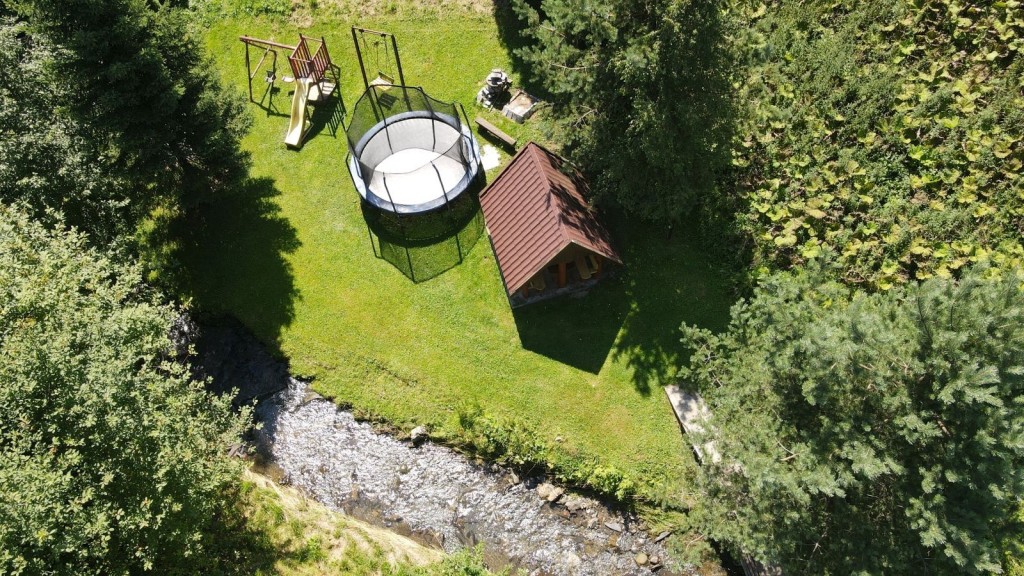 V exteriéri je drevený altánok pri potôčiku so sedením, kde si hostia pripravia chutné špeciality na grile či v kotlíku.
