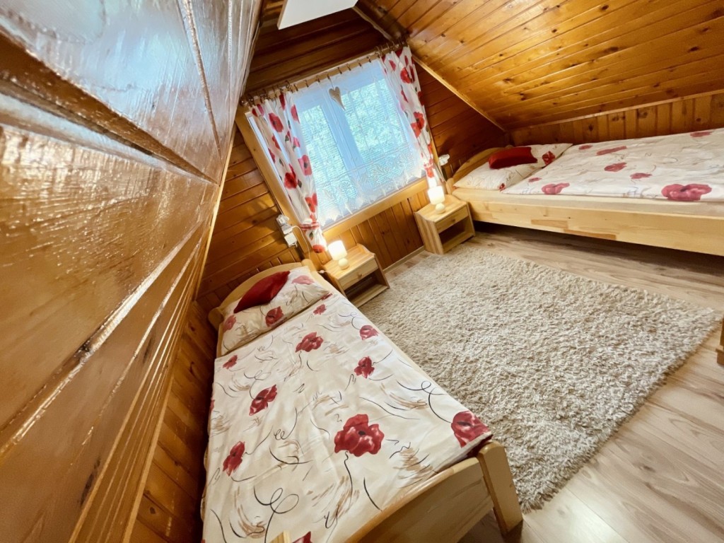 Izby na spanie sa nachádzajú na prvom poschodí. K dispozícii je posteľné prádlo, uterák s osuškou, k dispozícii aj detská postieľka.